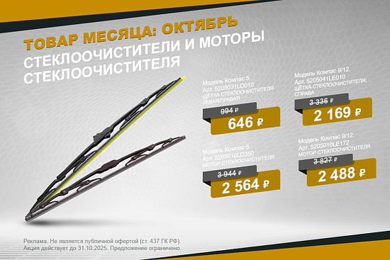 Специальная цена на стеклоочистители и моторы стеклоочистителя для КАМАЗ Компас до 31 октября.